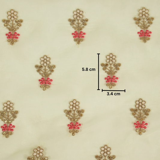 Sami Ivory Viscose Organza Embroidered Fabric in Buti Pattern