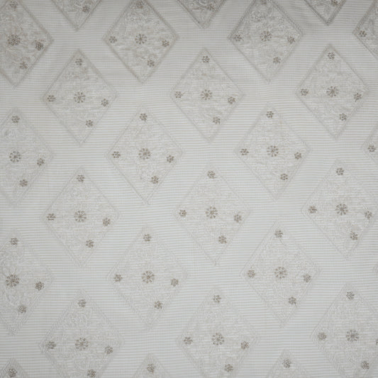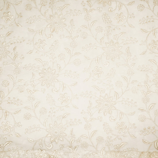 Valiga Ivory Chanderi Embroidered Fabric in Jaal Pattern