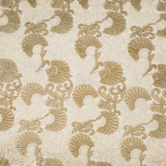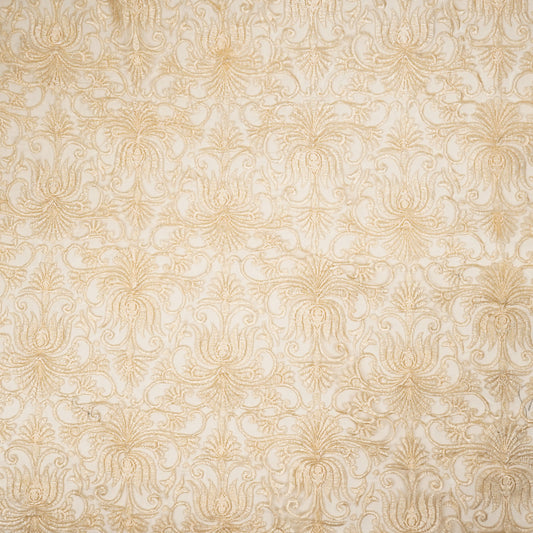 Isra Ivory/Gold Chanderi Embroidered Fabric in Jaal Pattern
