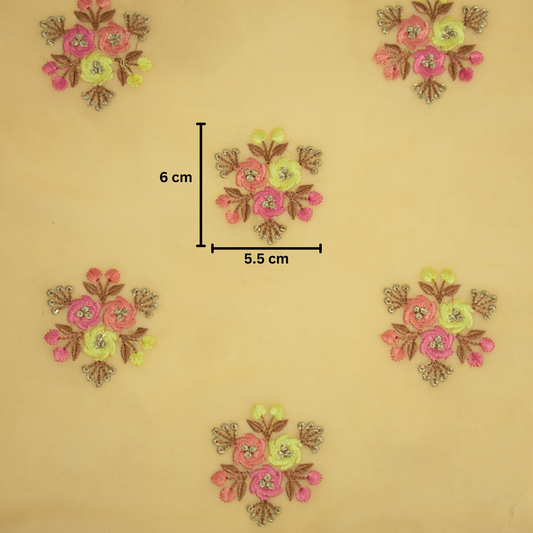 Mishka Mango Viscose Georgette Embroidered Fabric in Floral Buta Pattern