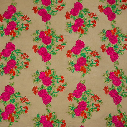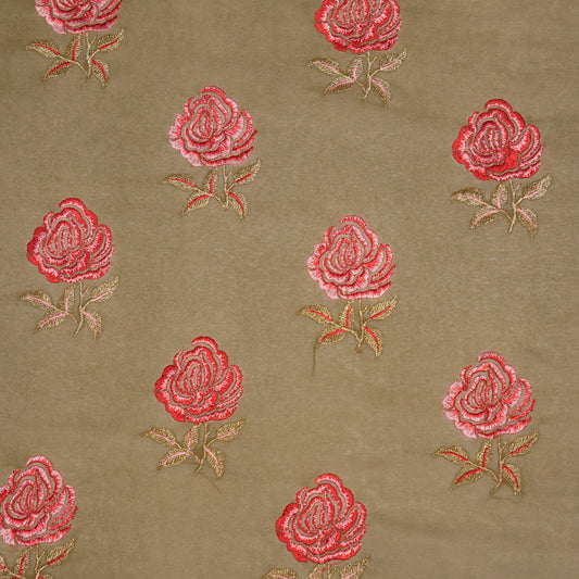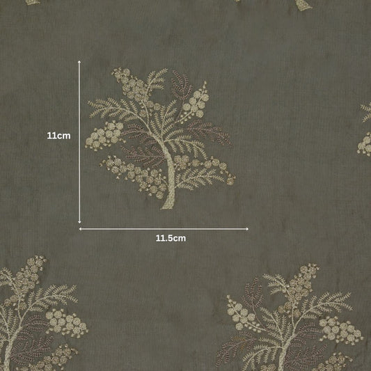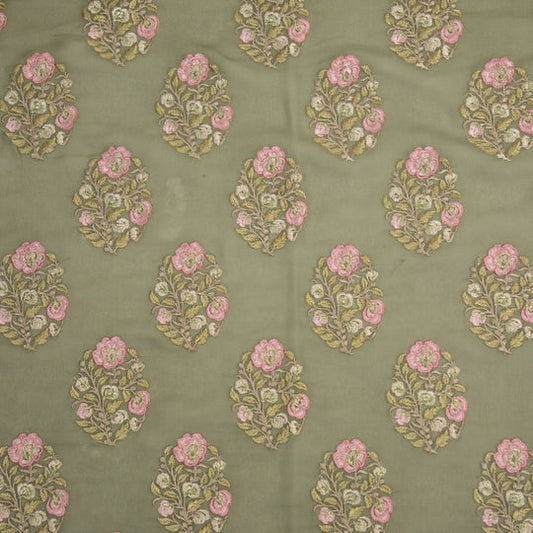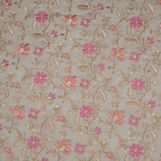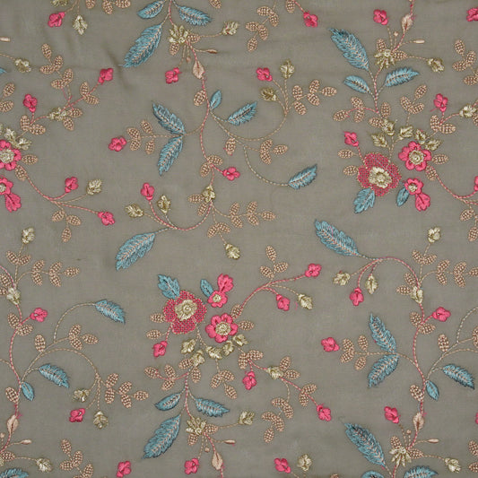Maitri Floral Mouse Viscose Georgette Embroidered Fabric in Jaal Pattern