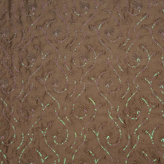 Naumani Mouse Chanderi Embroidered Fabric in Sequins Jaal Pattern