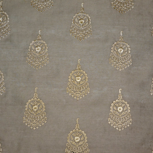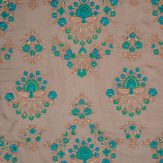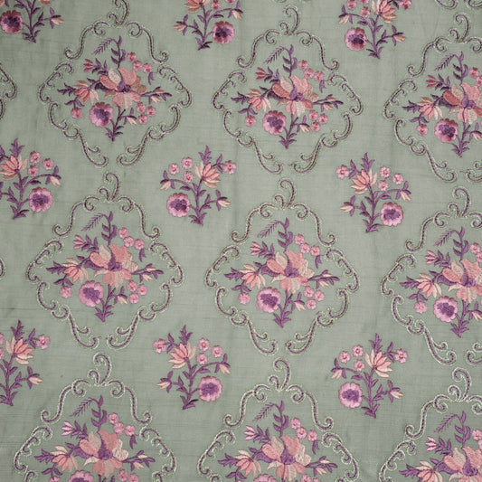Nuryn Mouse Chanderi Embroidered Fabric in Floral Buta Pattern