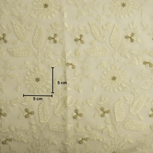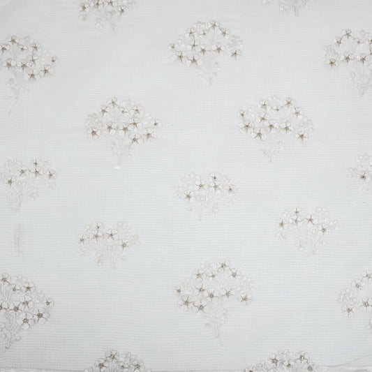 Vaanya White Chanderi Embroidered Fabric in Jaal Pattern