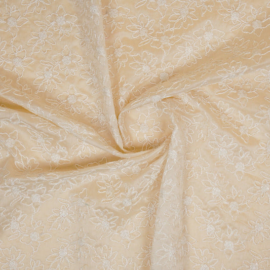 Pariza Natural Cotton Embroidered Fabric in Jaal Pattern