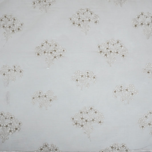 Yatika White Semi Munga Kota Embroidered Fabric in Buta Pattern