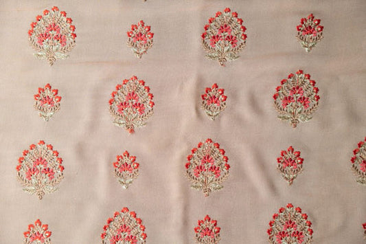Shamsha Beige Viscose Georgette Embroidered Fabric in Buta Pattern
