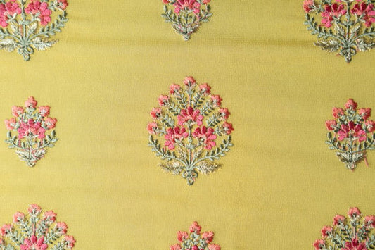 Shamsha Gold Viscose Georgette Embroidered Fabric in Buta Pattern