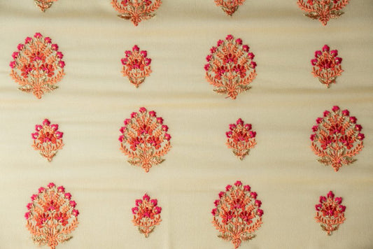 Shamsha Peach Viscose Georgette Embroidered Fabric in Buta Pattern