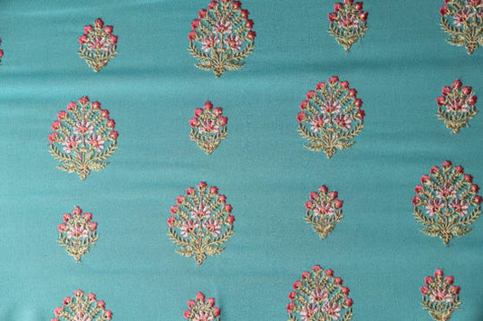 Shamsha Turquoise Viscose Georgette Embroidered Fabric in Buta Pattern