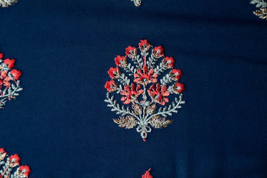 Shamsha Navy Blue Viscose Georgette Embroidered Fabric in Buta Pattern