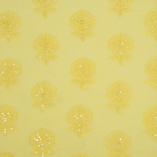 Sidra Lemon Viscose Georgette Embroidered Fabric in Buta Pattern