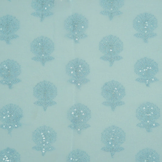 Sidra Sky Blue Viscose Georgette Embroidered Fabric in Buta Pattern