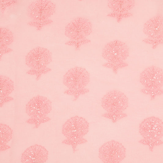Sidra Pink Viscose Georgette Embroidered Fabric in Buta Pattern