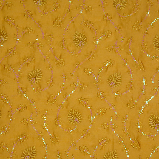 Wajiha Sequins Gold Chanderi Embroidered Fabric in Jaal Pattern