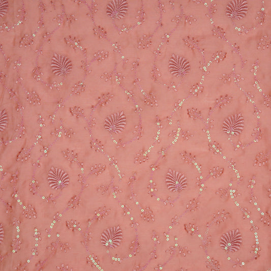 Wajiha Sequins Gajari Chanderi Embroidered Fabric in Jaal Pattern