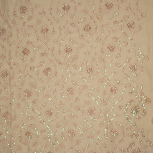 Wajiha Sequins Cream Chanderi Embroidered Fabric in Jaal Pattern