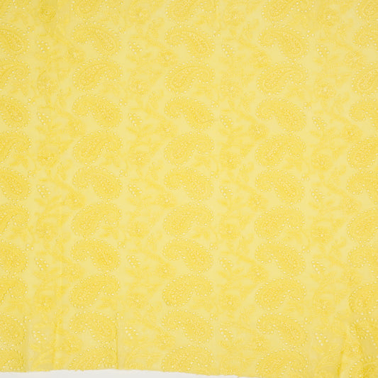 Zahra Lemon Viscose Georgette Embroidered Fabric in Jaal Pattern