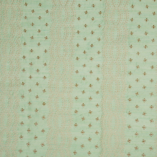 Naira Sea Green Viscose Raw Silk Embroidered Fabric in Jaal Pattern