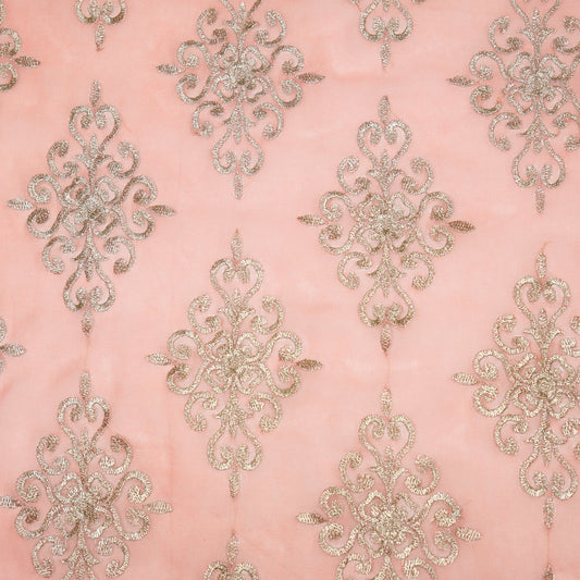 Mumtaz Peach Net Embroidered Fabric in Jaal Pattern