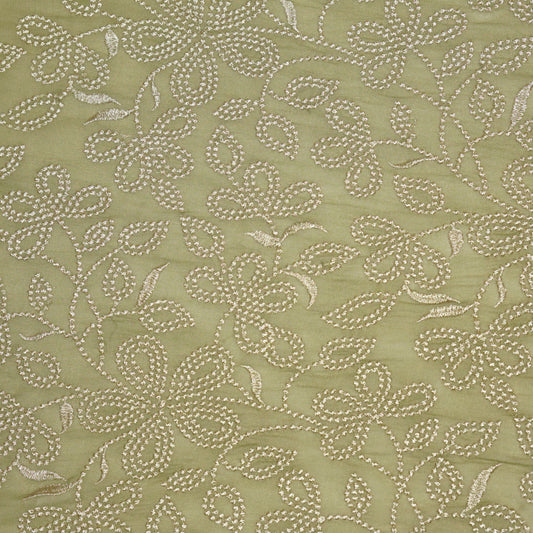 Numaya Olive Viscose Georgette Embroidered Fabric in Jaal Pattern