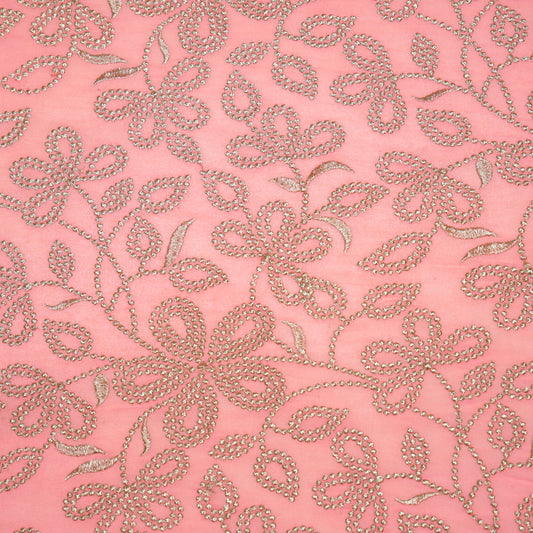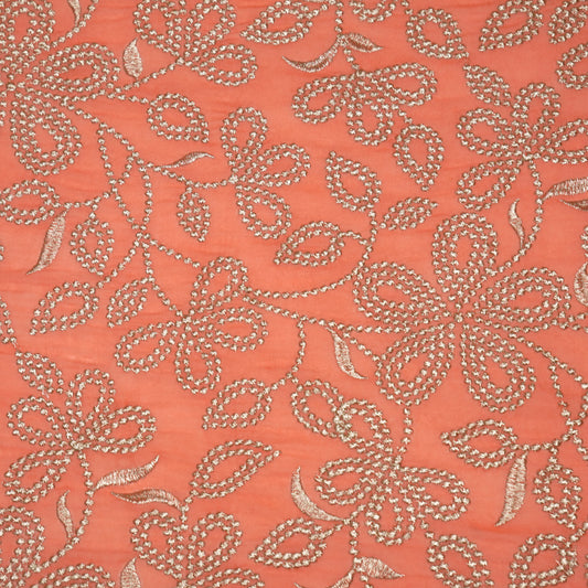 Urwi Peach Viscose Georgette Embroidered Fabric in Buta