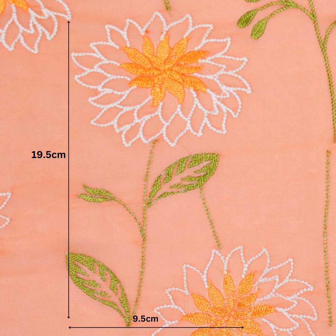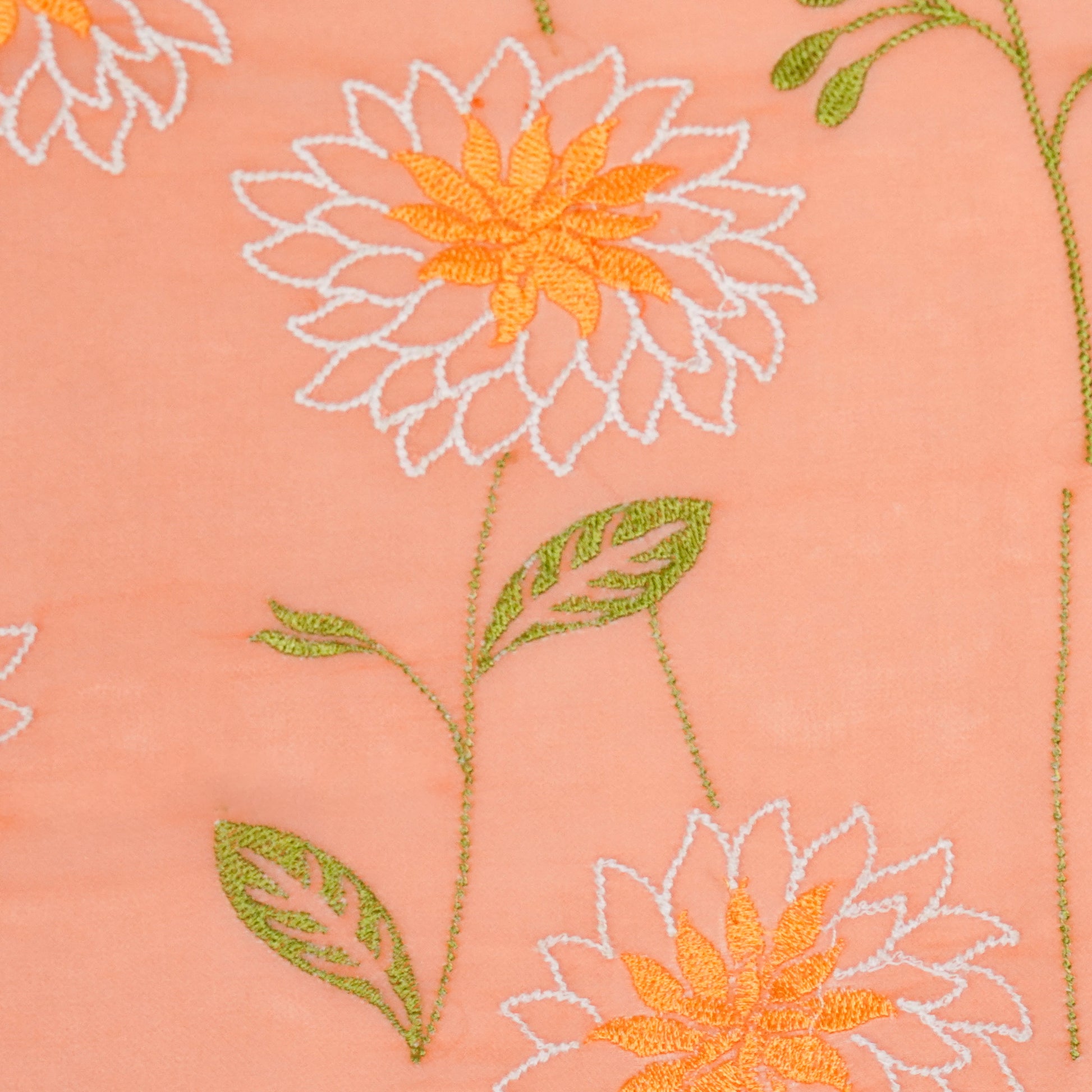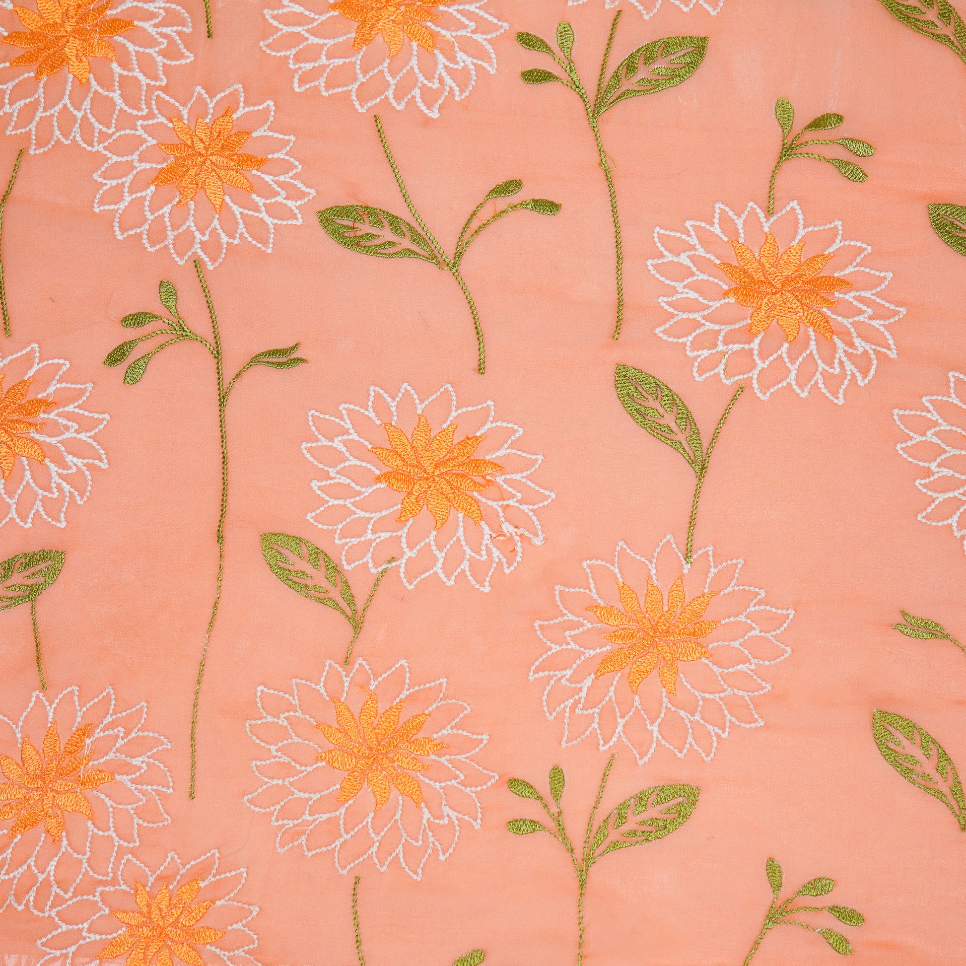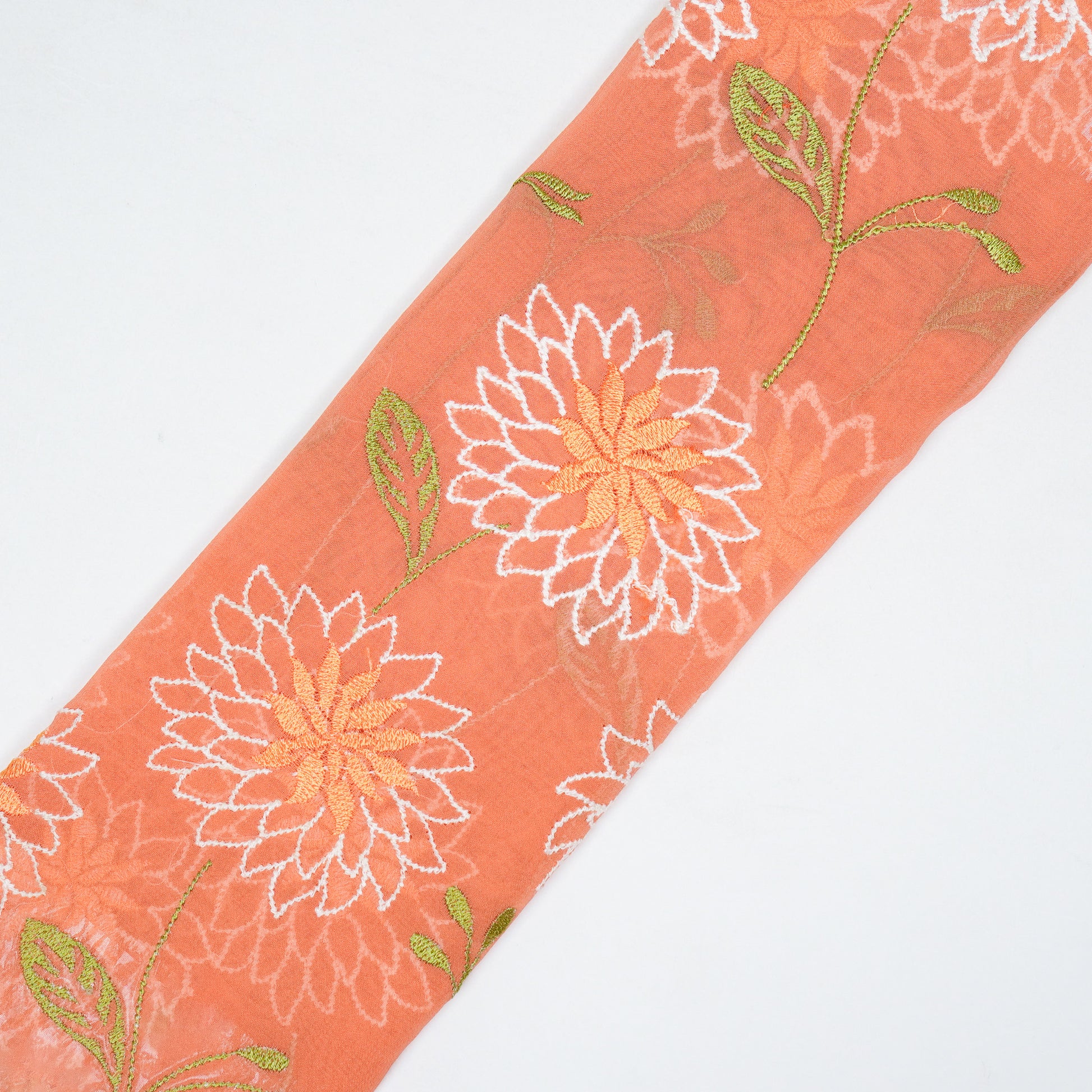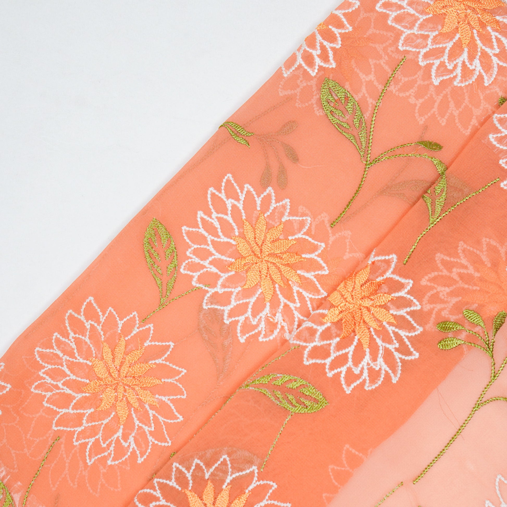 Akila Deep Peach Viscose Georgette Embroidered Fabric in Jaal Pattern