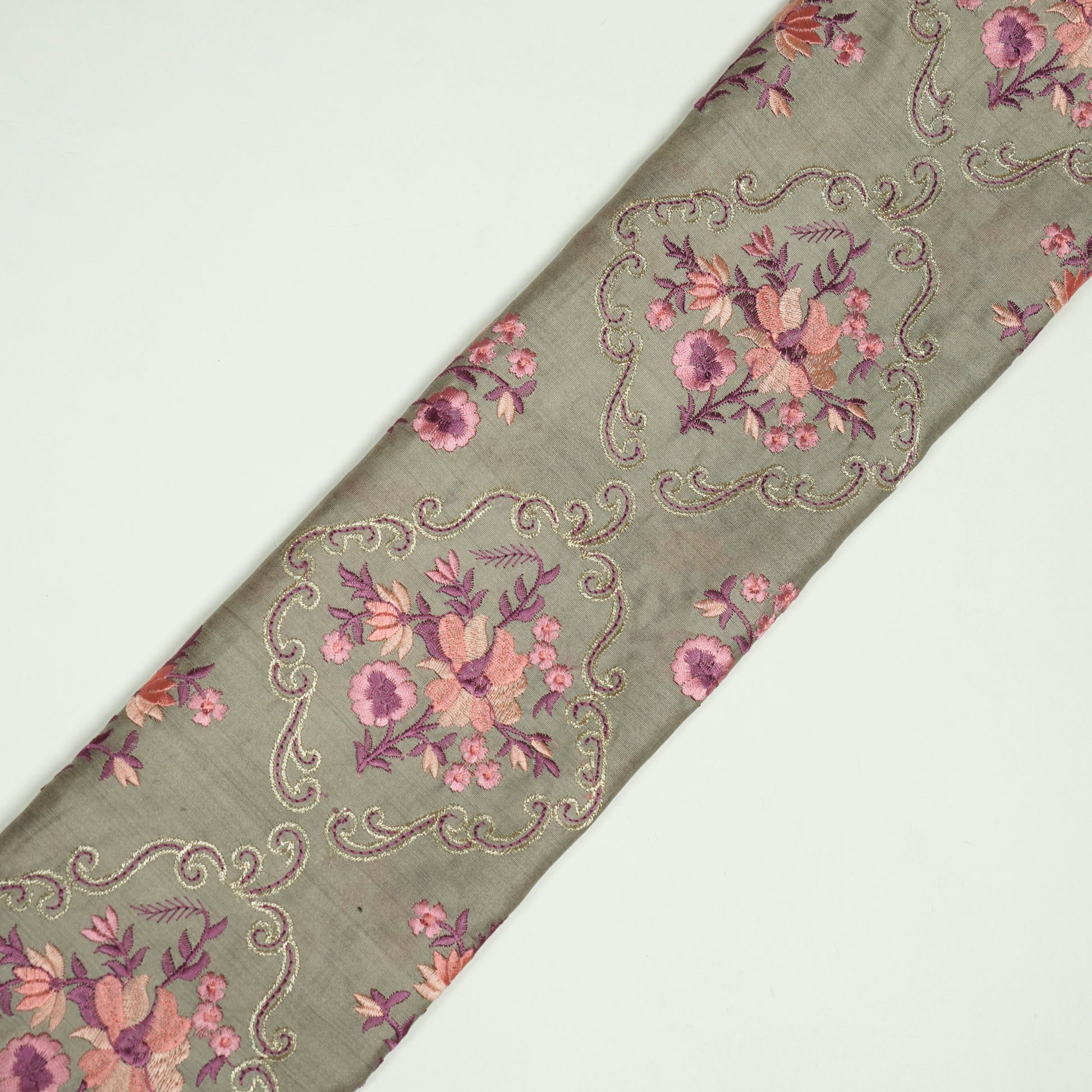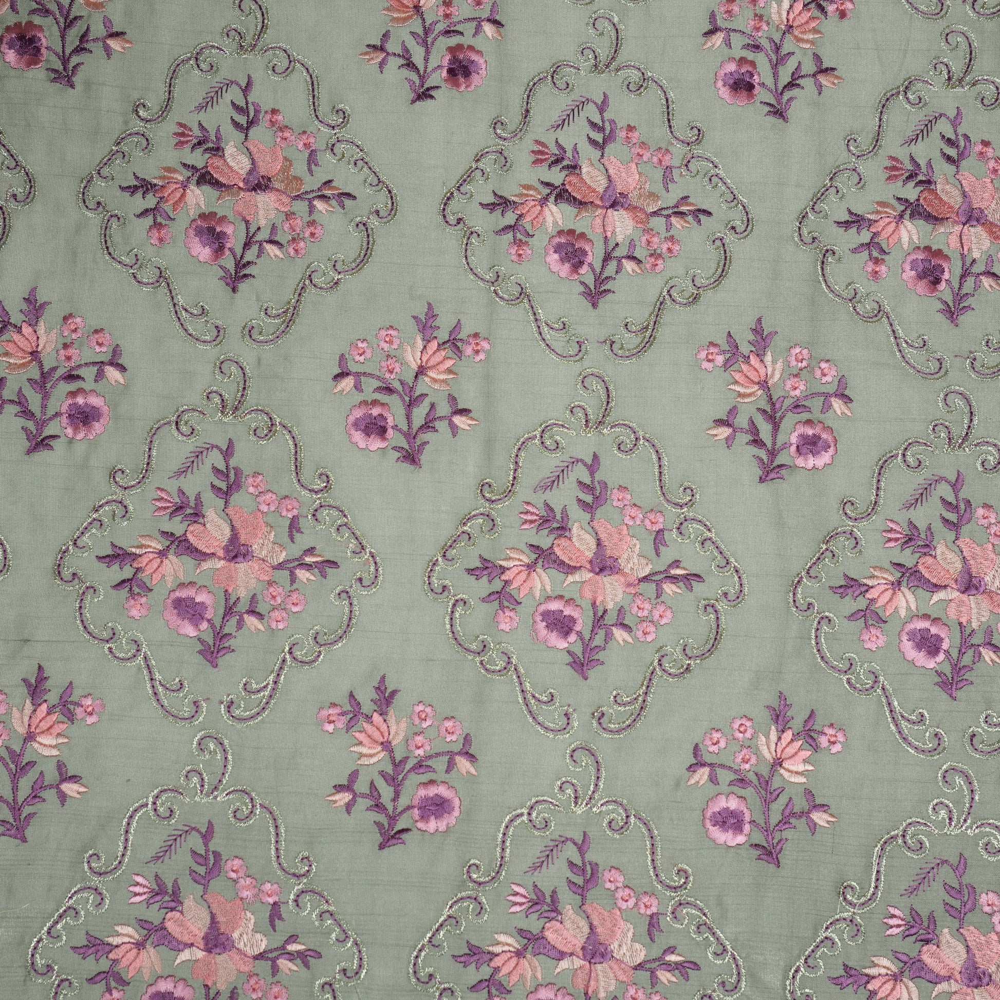 Aliza Mouse Chanderi Embroidered Fabric in Jaal Pattern