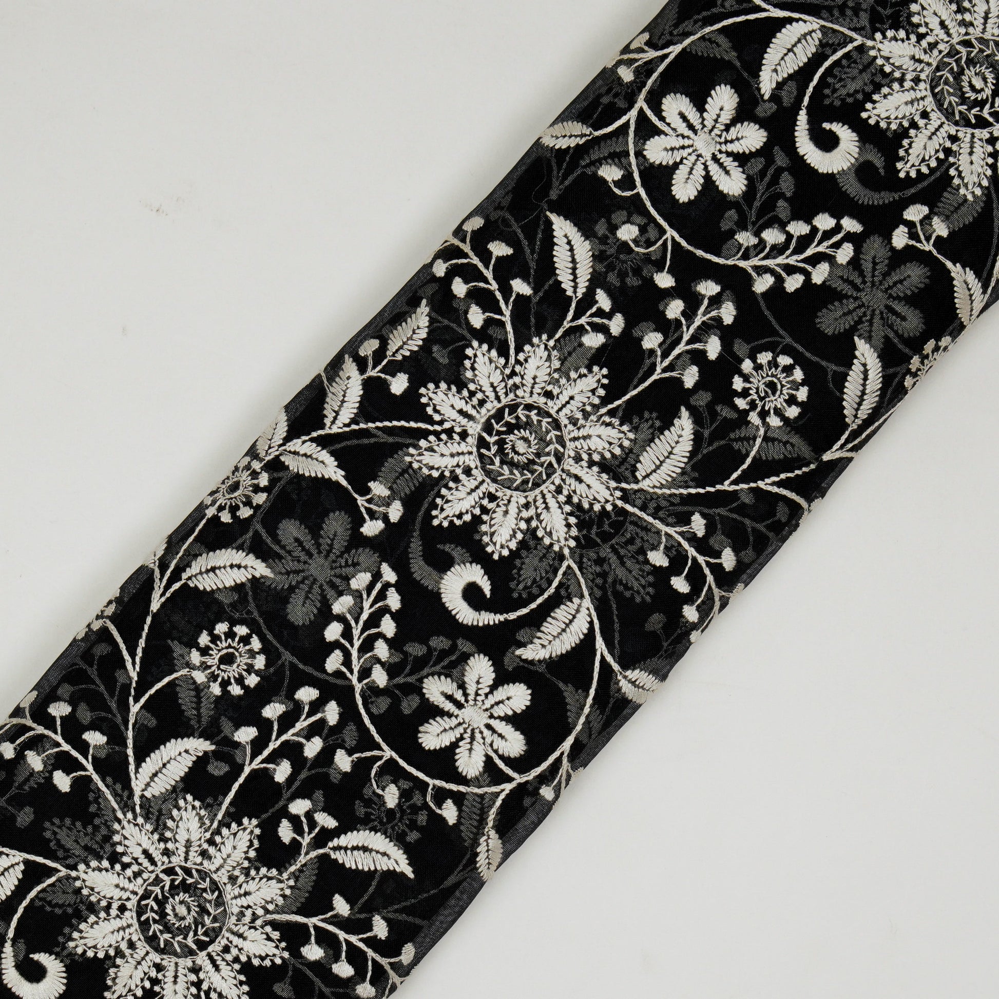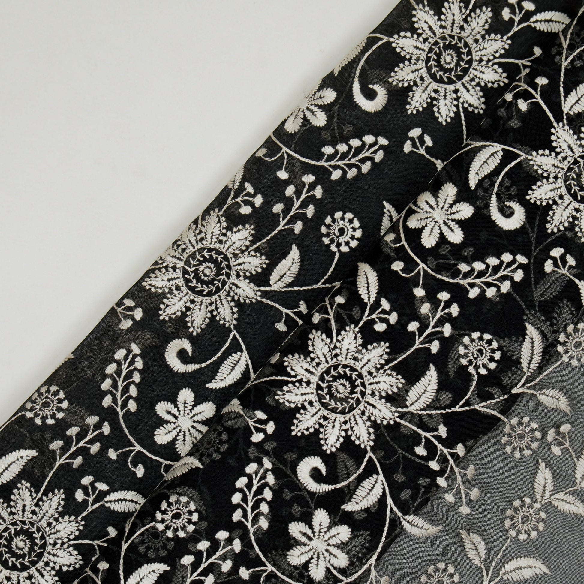 Esita Black Viscose Organza Embroidered Fabric in Jaal Pattern