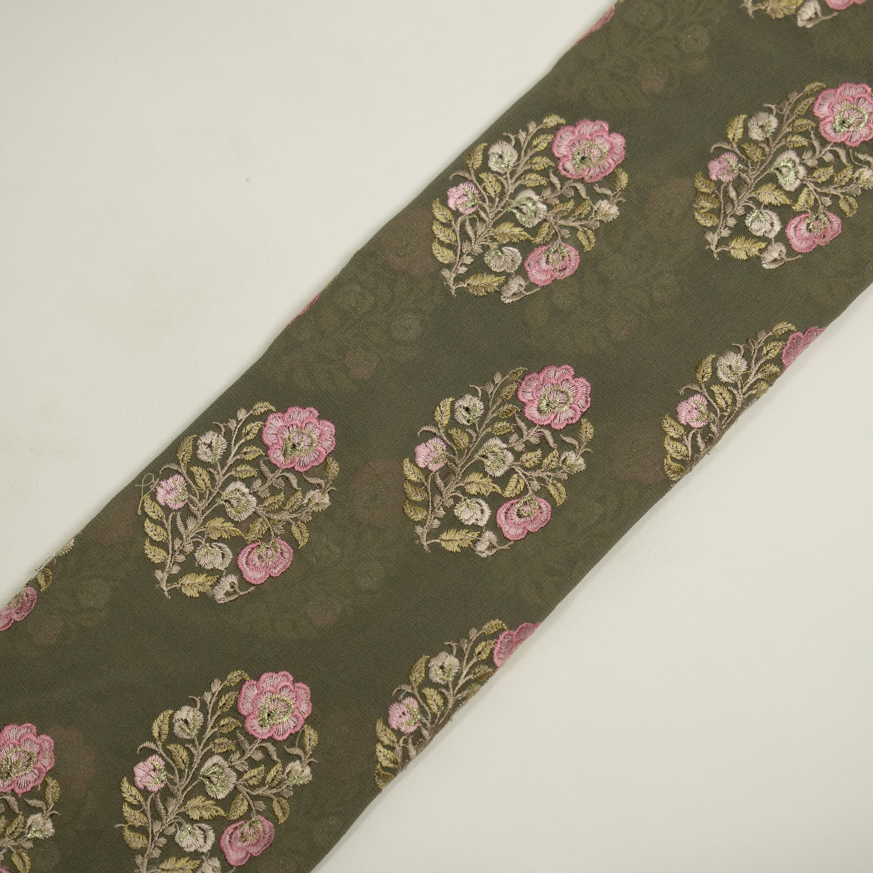 Haima Mouse Viscose Georgette Embroidered Fabric in Buta Pattern