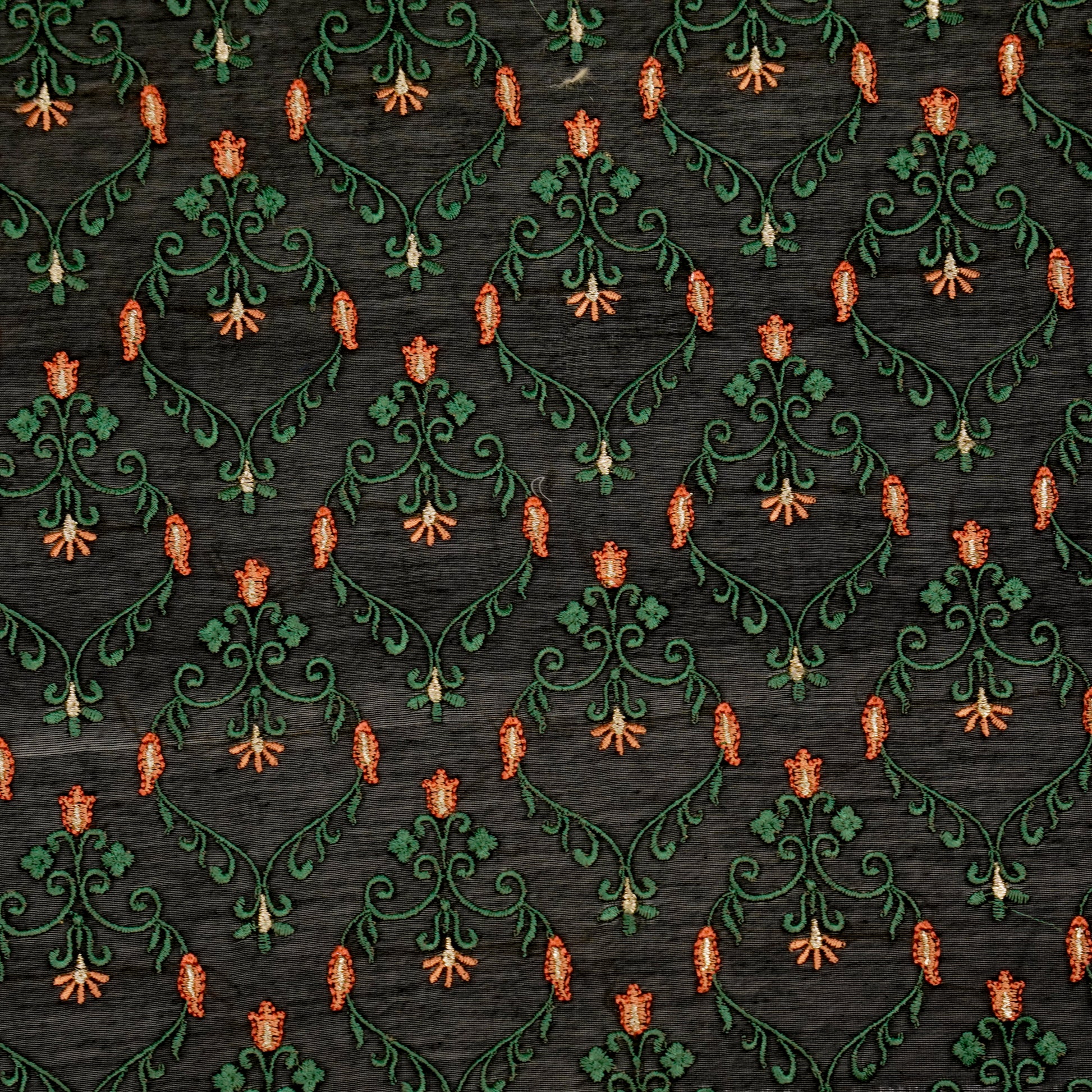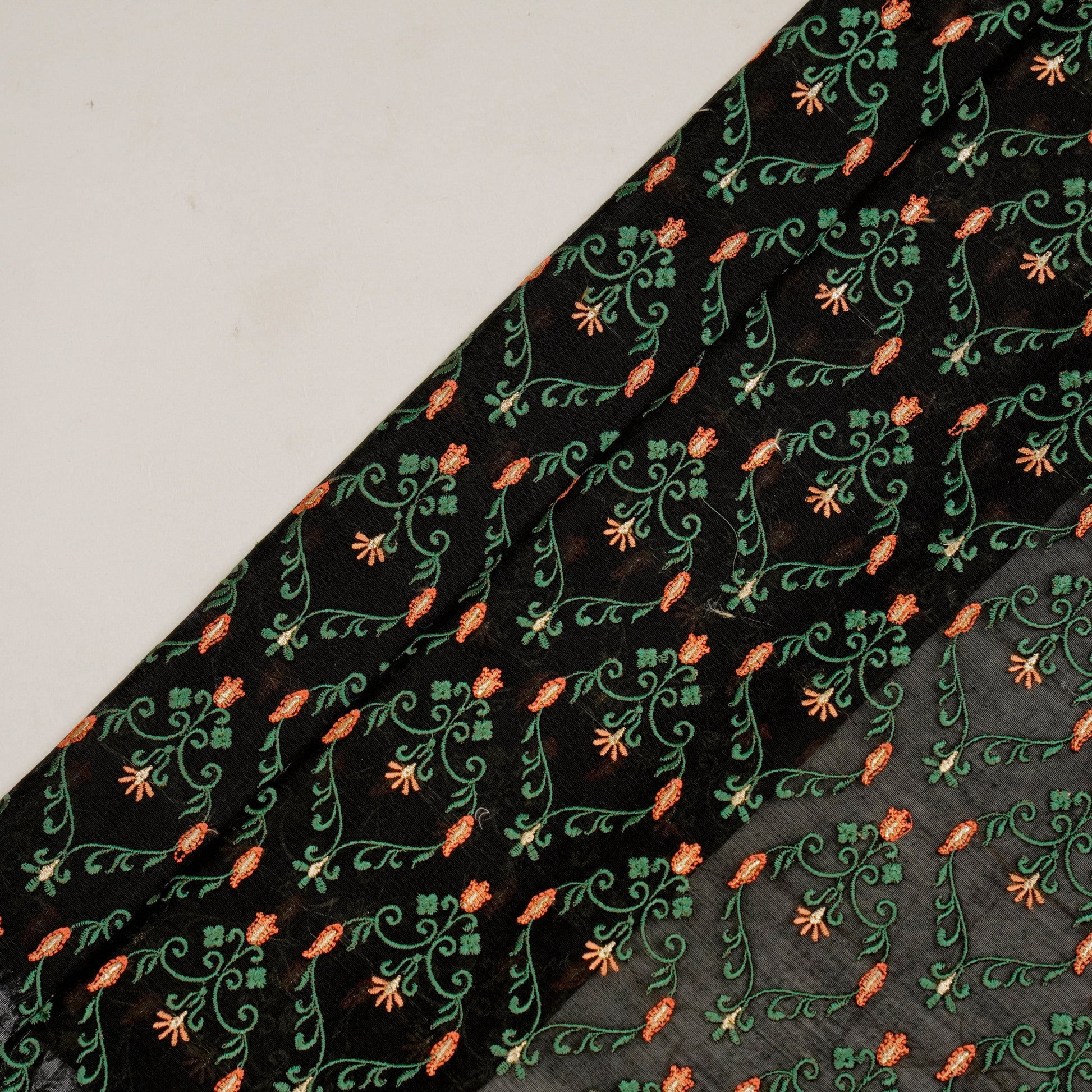 Raza Black Chanderi Embroidered Fabric in Jaal Pattern