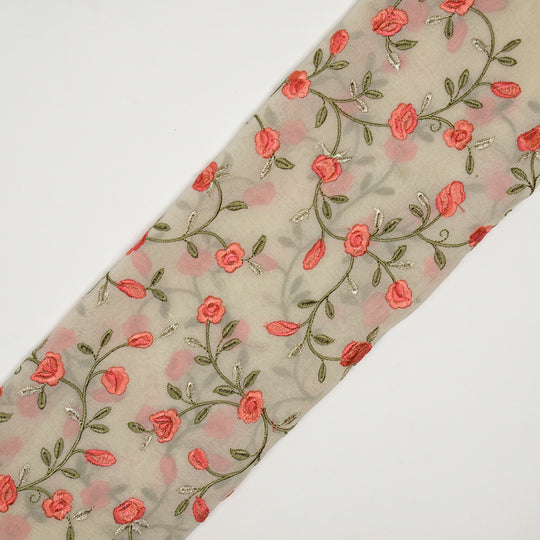 Saha Cream Viscose Georgette Embroidered Fabric in Jaal Pattern