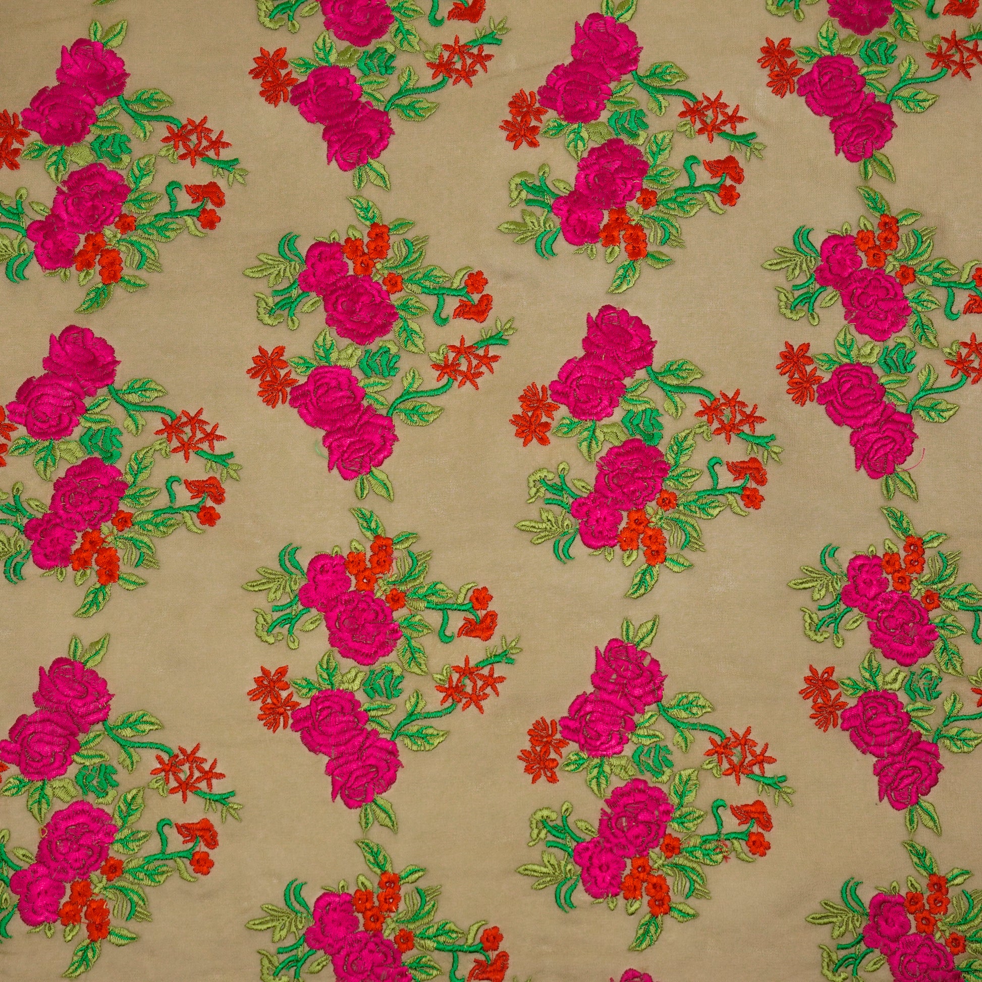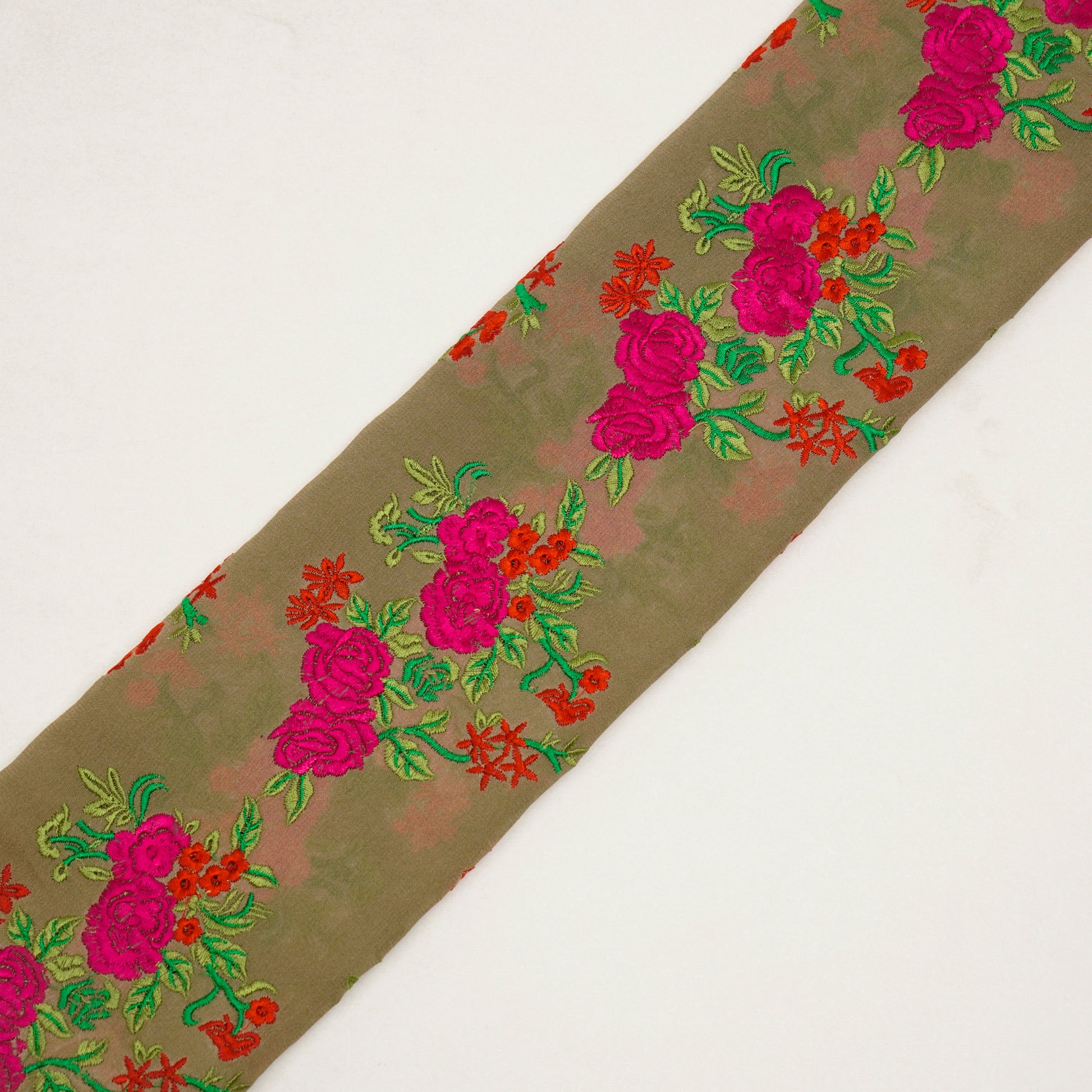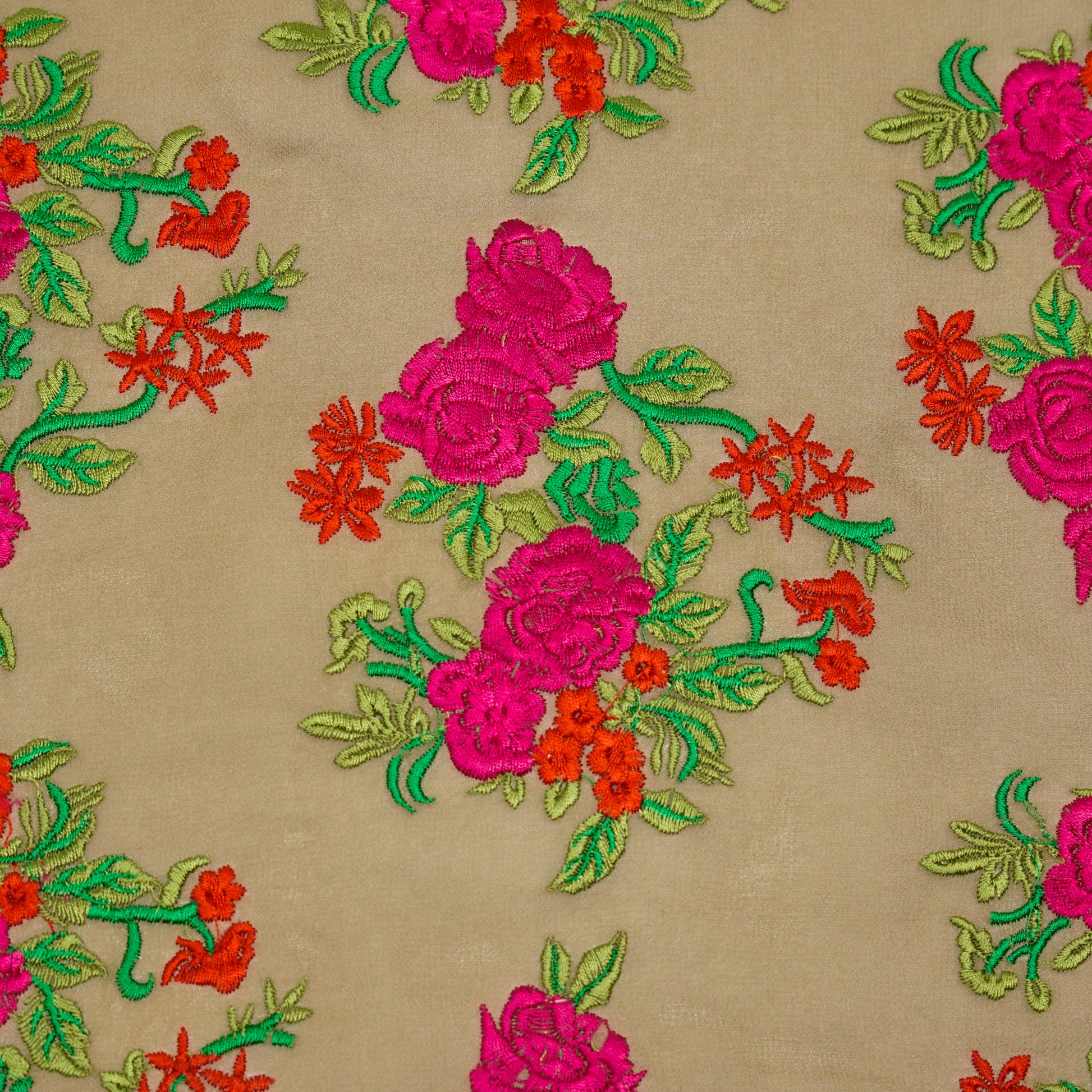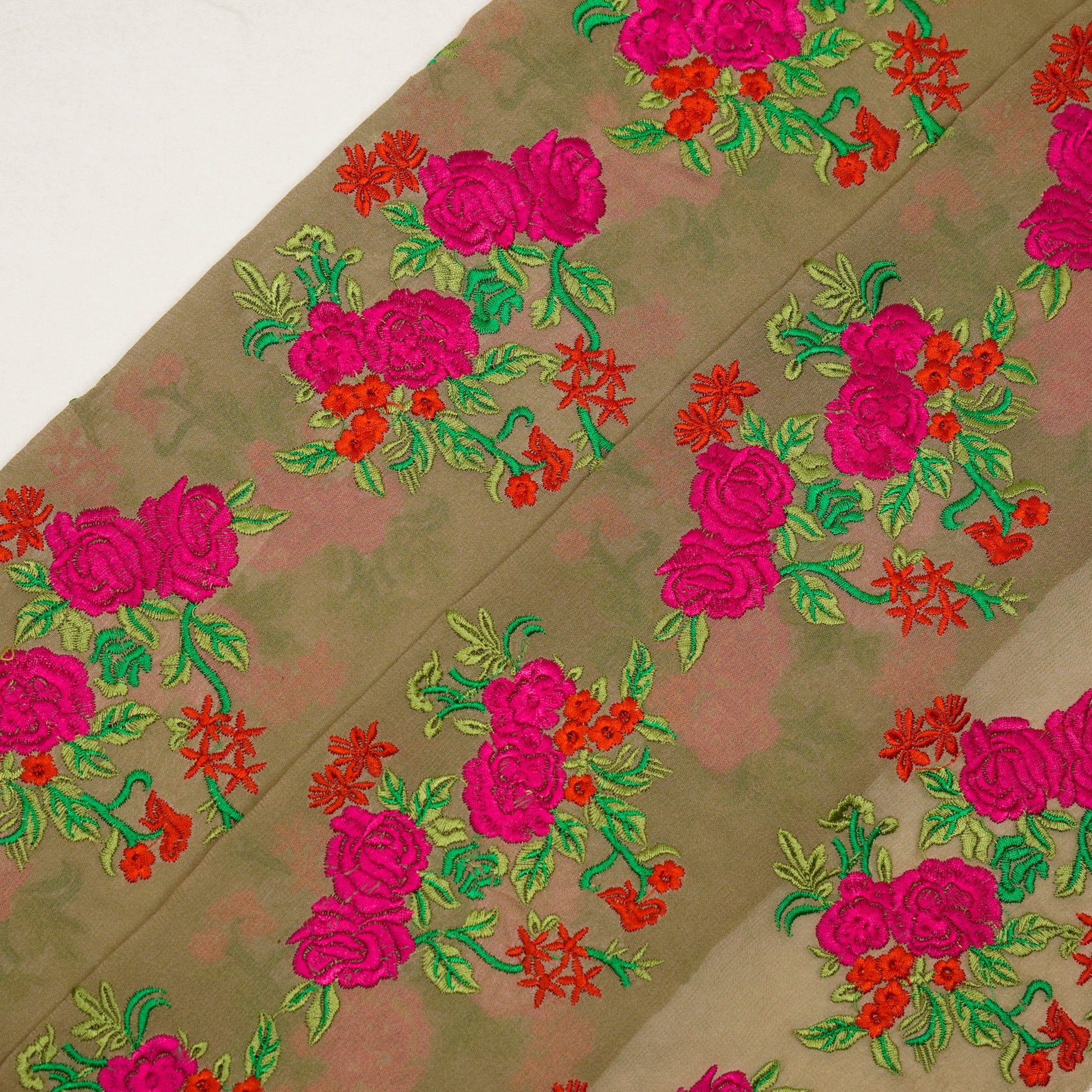 Zaira Mouse Viscose Georgette Embroidered Fabric in Jaal Pattern